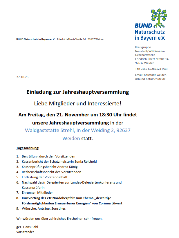 Stammtisch der LBV-Naturschutzgruppe Weiden/Neustadt