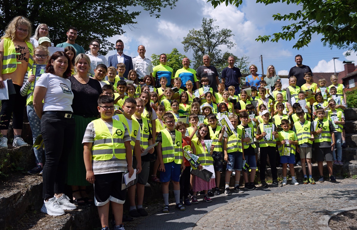 Auerbach. Ein besonderes Erlebnis war es, für die etwa 70 Kinder der vierten Klassen, als sie aus den Händen ihres Ausbilders den Wimpel und den damit verbundenen „Fahrradführerschein“ bekamen.