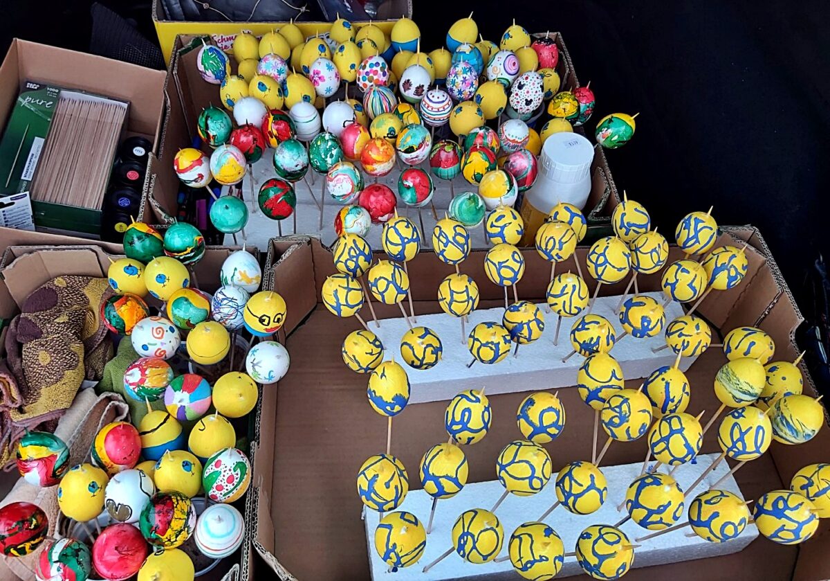 Überstunden nach dem Osterfest: Brandweiher-Kinder bemalen bunte Eier
