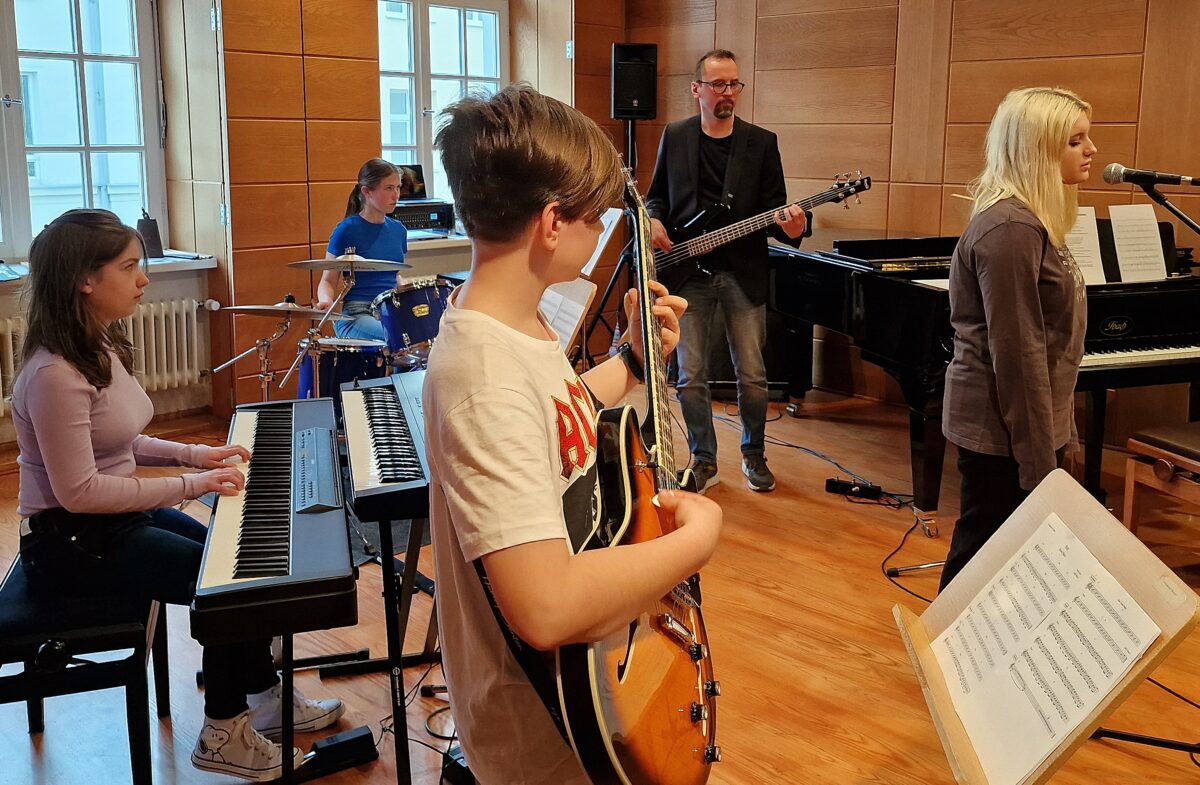Schlagzeug, Gitarre und Gesang – Schüler stehen erstmals auf der Bühne