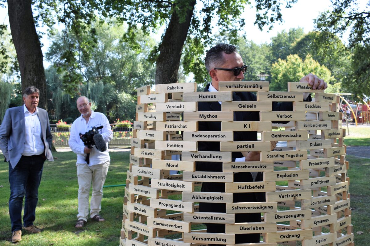 Grafenwöhr. Wörter können verletzen, wenn sie ausgesprochen werden. Aber sie können auch zum Nachdenken anregen, wie auch das Kunstprojekt von David Adam "TABULA PHRASA" im Stadtpark.