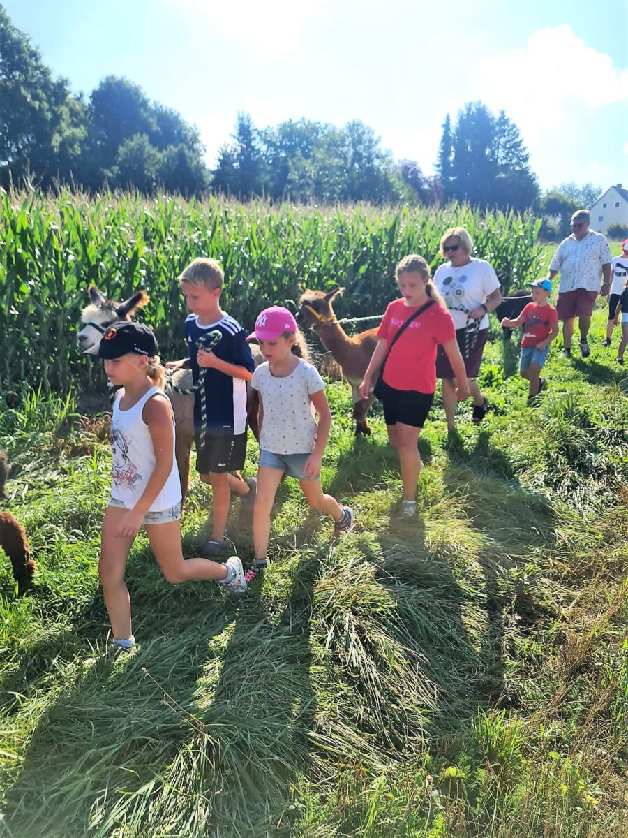 Etzenricht. Einfach mal die Seele baumeln lassen - Im Ferienprogramm galt die Einladung der Unionsfamilie für Kinder ab sechs Jahren für eine entschleunigende und beruhigende Wanderung mit Alpakas.
