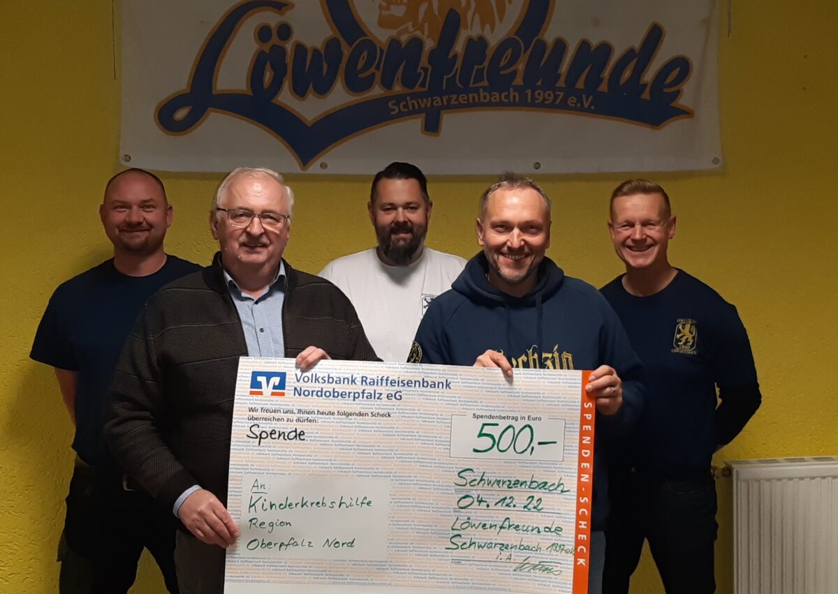 Löwenfreunde spenden 500 Euro an Kinderkrebshilfe Oberpfalz Nord